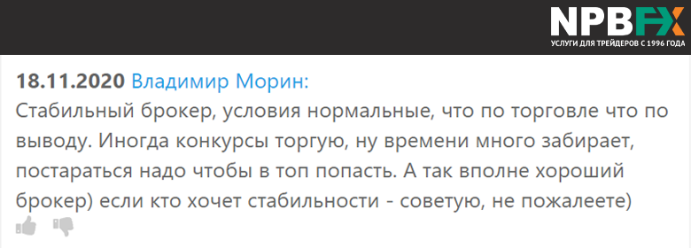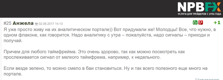 И напротив, часто можно наткнуться на вот такие восторженные отзывы, указывающие, что компания NPBFX действительно заслуживает места в топе лучших компаний СНГ.