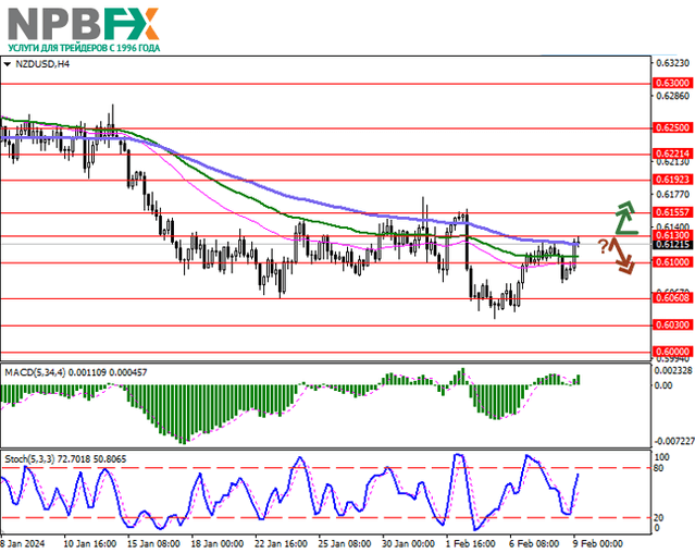 Уровни поддержки: 0.6100, 0.6060, 0.6030, 0.6000.