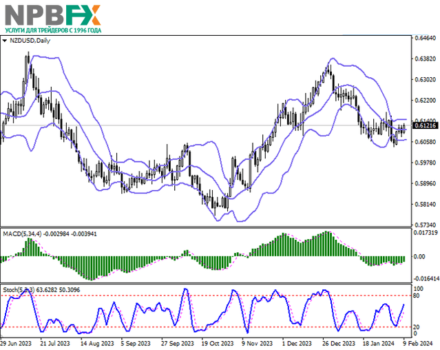 Пара NZD/USD показывает довольно активный рост, обновляя локальные максимумы от 2 февраля. Инструмент тестирует отметку 0.6120 на пробой вверх, в то время как фундаментальная картина на рынке практически не изменяется. Накануне позиции американской валюты вновь получили поддержку со стороны комментариев представителей ФРС США, которые вслед за главой регулятора Джеромом Пауэллом выступили в пользу более медленного повышения стоимости заимствований. На этом фоне сценарий с корректировкой процентной ставки на -25 базисных пунктов в марте инвесторы оценивают как маловероятный (не более 20,0%) и ориентируются на майское заседание ведомства.