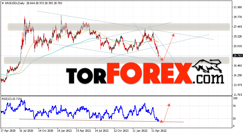 Таким образом, Прогноз цен на Серебро на 16 — 20 мая 2022 предполагает попытку теста уровня поддержки вблизи области 18.75. Затем, продолжение роста цен на Серебро с целью выше уровня 25.25. В пользу подъёма выступит тест линии тренда на индикаторе относительной силы. Отменой варианта роста XAG/USD станет падение и пробой уровня 17.55. Это укажет на продолжение снижения котировок в область ниже уровня 13.55.