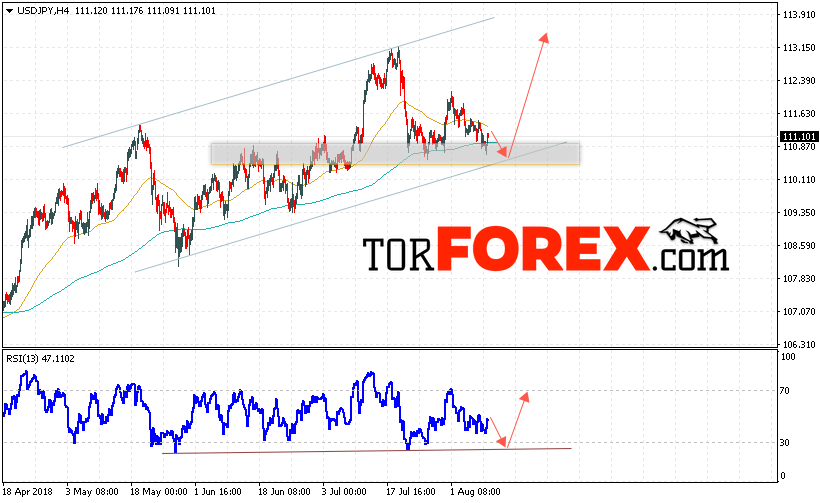 Таким образом, USD/JPY прогноз Доллар Иена на 10 августа 2018 предполагает попытку теста области поддержки вблизи уровня 110.55 и продолжения роста котировок в область выше уровня 113.70, в пользу роста пары выступит тест линии тренда на индикаторе относительной силы, отменой варианта роста станет снижение и пробой области 109.80, что укажет на пробой области поддержки и продолжение падения пары.
