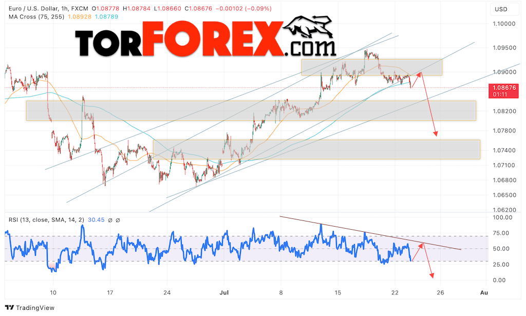 Прогноз Евро Доллар EUR/USD на 24 июля 2024