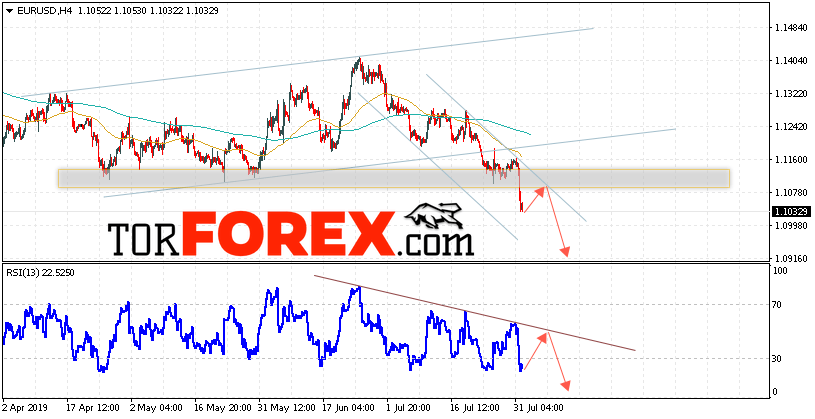 Таким образом, EUR/USD прогноз Евро Доллар на 2 августа 2019 предполагает попытку теста области сопротивления вблизи уровня 1.1080. Откуда стоит ожидать отскок и попытку продолжения снижения пары в область ниже уровня 1.0915. В пользу снижения валютной пары выступит тест нисходящей линии тренда на индикаторе относительной силы. Отменой варианта снижения EUR/USD станет сильный рост и пробой уровня 1.1165. Это укажет на пробой границы канала и продолжение подъёма пары в область выше уровня 1.1245.