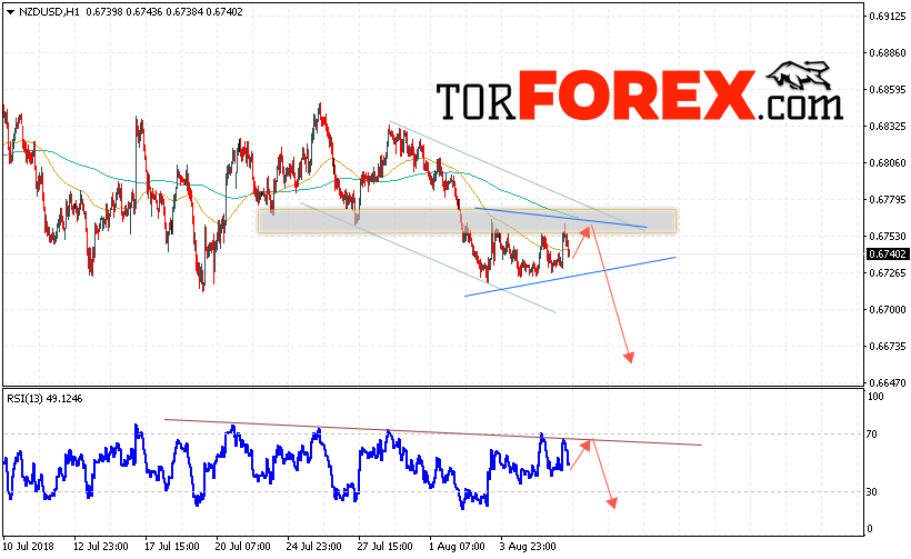 Таким образом, Форекс прогноз и аналитика NZD/USD на 9 августа 2018 предполагает попытку теста области сопротивления вблизи уровня 0.6755, откуда стоит ожидать продолжения снижения котировок в область ниже уровня 0.6650, дополнительным сигналом в пользу падения выступит тест линии тренда на индикаторе относительной силы, отменой варианта снижения пары NZD/USD станет сильный рост и пробой уровня 0.6790, в этом случае стоит ожидать продолжения роста пары.