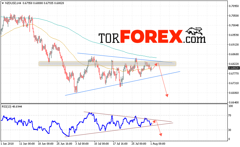 Таким образом, Форекс прогноз и аналитика NZD/USD на 2 августа 2018 предполагает попытку теста области сопротивления вблизи уровня 0.6825, откуда стоит ожидать продолжения снижения котировок в область ниже уровня 0.6645, дополнительным сигналом в пользу падения выступит тест линии тренда на индикаторе относительной силы, отменой варианта снижения пары NZD/USD станет сильный рост и пробой уровня 0.6870, в этом случае стоит ожидать продолжения роста пары.