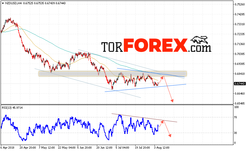 Таким образом, Форекс прогноз и аналитика NZD/USD на 8 августа 2018 предполагает попытку теста области сопротивления вблизи уровня 0.6850, откуда стоит ожидать продолжения снижения котировок в область ниже уровня 0.6550, дополнительным сигналом в пользу падения выступит тест линии тренда на индикаторе относительной силы, отменой варианта снижения пары NZD/USD станет сильный рост и пробой уровня 0.7045, в этом случае стоит ожидать продолжения роста пары.