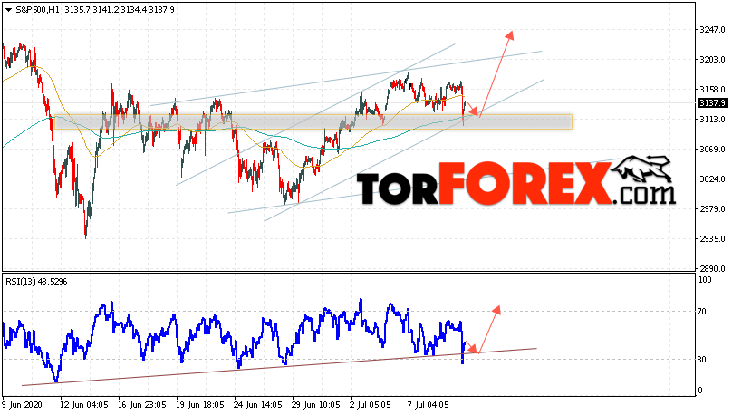 Таким образом, S&P 500 прогноз и аналитика на 10 июля 2020 предполагает попытку теста уровня поддержки вблизи области 3115. Затем, продолжение роста в область выше уровня 3305. В пользу подъёма котировок S&P 500 выступит тест линии поддержки на индикаторе относительной силы. Отменой варианта роста станет падение стоимости индекса и пробой области 3055. Это укажет на продолжение падения с целью ниже области 2845.