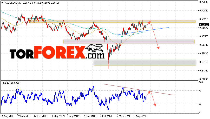 Таким образом, Технический анализ NZD/USD на неделю 12 — 16 октября 2020 предполагает попытку теста уровня сопротивления вблизи области 0.6735. Далее продолжение падения пары NZD/USD в область ниже уровня 0.6035. Дополнительным сигналом в пользу падения выступит тест линии сопротивления на индикаторе относительной силы. Отменой варианта снижения пары станет сильный рост и закрытие котировок NZD/USD выше уровня 0.6945. В этом случае стоит ожидать продолжение подъёма с целью выше уровня 0.7295.