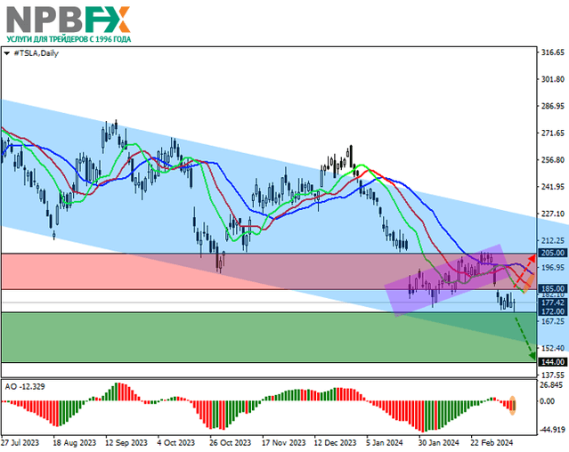 Акции Tesla Inc., ведущего производителя электрокаров, продолжают глобальную коррекцию, торгуясь на уровне 177.00.