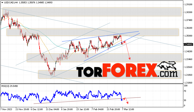 Таким образом, USD/CAD прогноз Канадский Доллар на 8 марта 2024 предполагает попытку теста области сопротивления вблизи уровня 1.3535. Далее, продолжение падения в область ниже уровня 1.3345. Дополнительным сигналом в пользу снижения Канадского Доллара на Форекс выступит тест линии тренда на индикаторе относительной силы. Отменой варианта падения котировок USD/CAD станет сильный рост и пробой уровня 1.3685. Это укажет на продолжение подъёма стоимости актива с потенциальной целью выше уровня 1.3965.