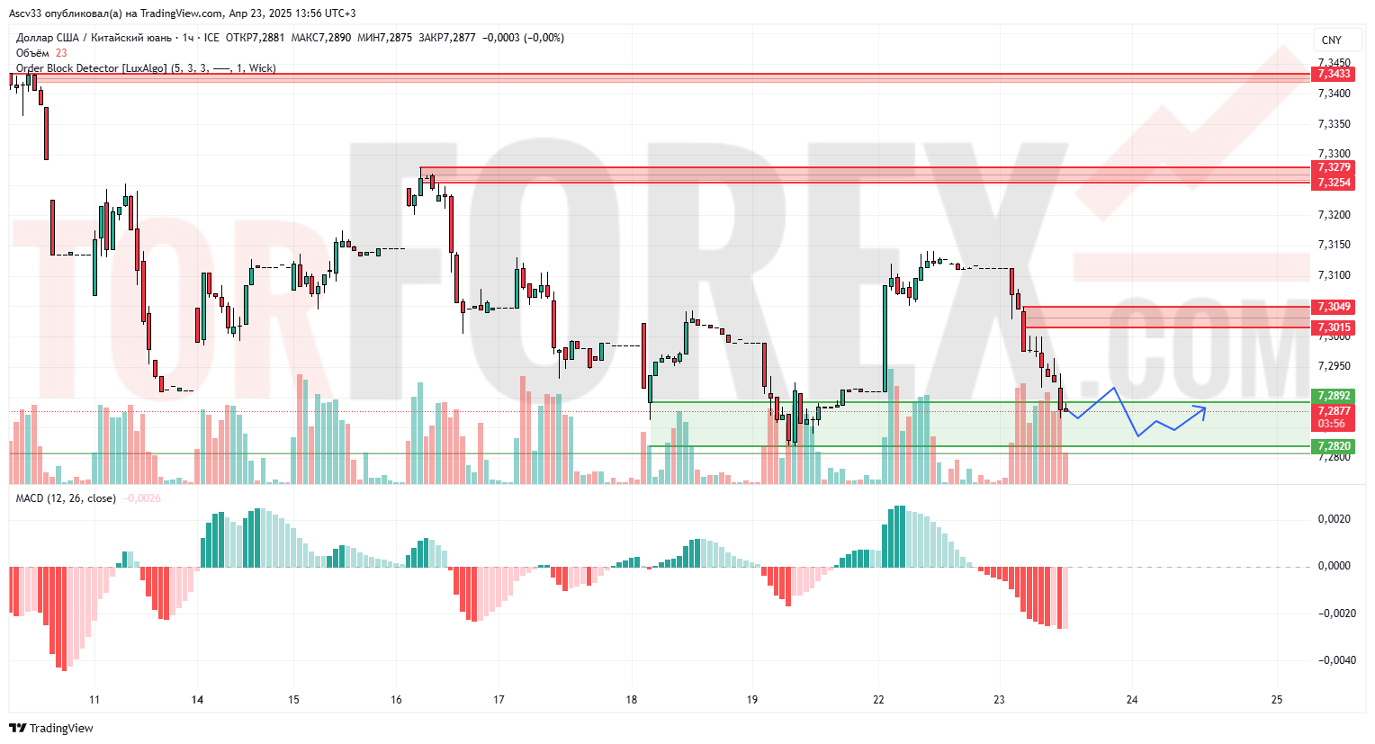 Ожидается консолидация в зоне 7.2820–7.3015. При пробое ниже 7.2820 возможно ускорение снижения. Устойчивый рост выше 7.3050 — сигнал о начале коррекционного отскока.