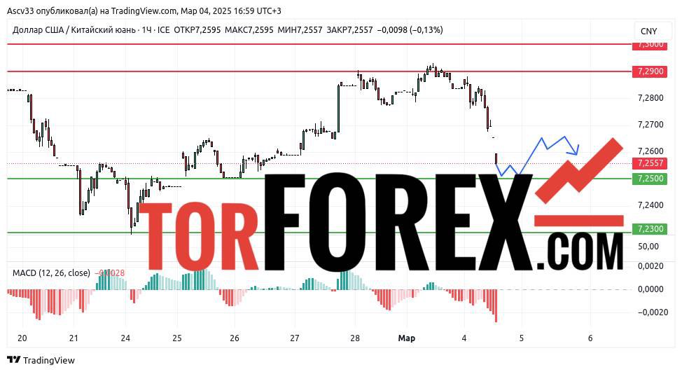 Текущая ценовая динамика указывает на отсутствие явного тренда, так как котировки колеблются в узком диапазоне. Если цена сможет закрепиться выше 7,2900, это создаст условия для тестирования 7,3000 и выше. Однако, если доллар ослабнет и пара опустится ниже 7,2500, есть вероятность снижения в область 7,2300.