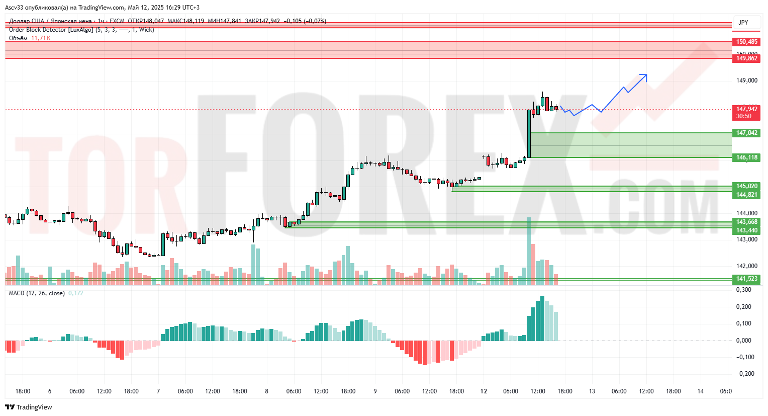 Прогноз Доллар Йена USD/JPY на 13 мая 2025