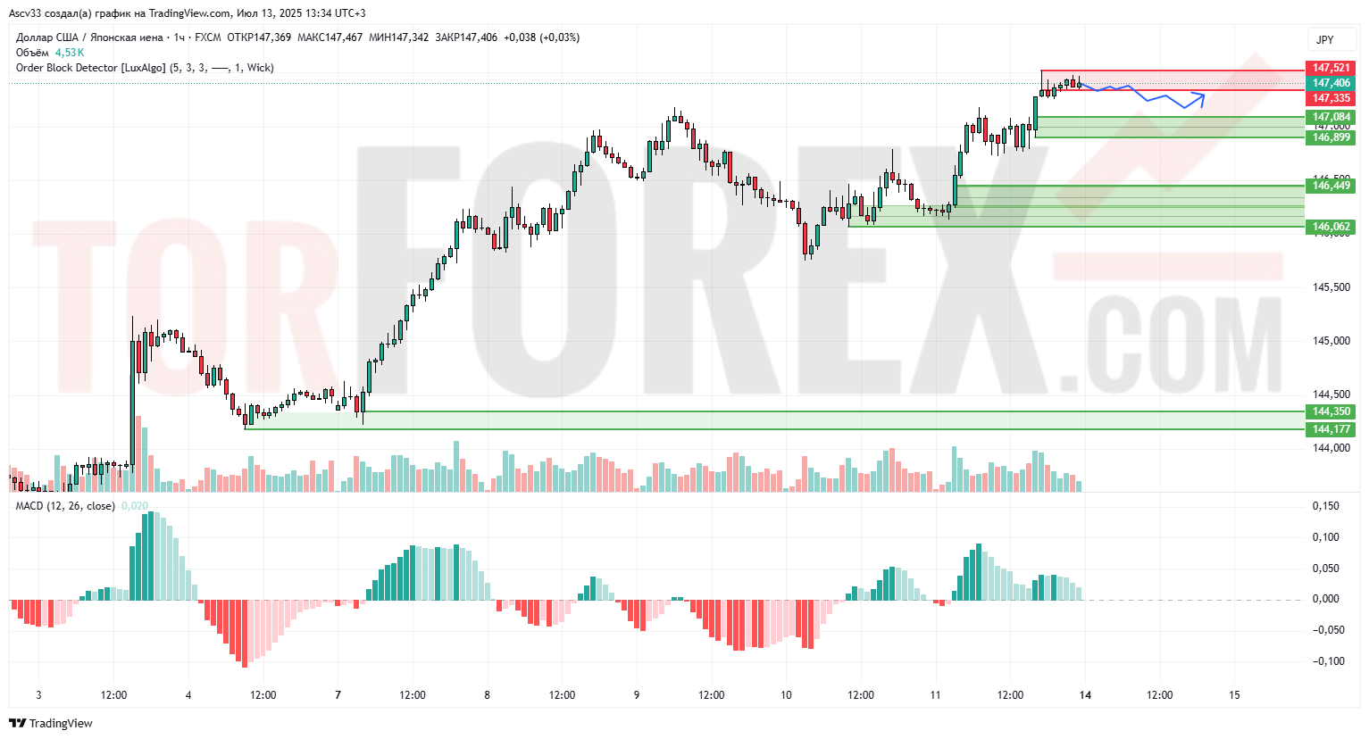 Ожидается боковая динамика с возможной коррекцией к поддержке 147.10–146.90. В случае удержания этой зоны возможен новый заход на пробой 147.50. Альтернативный сценарий — откат к 146.45 в случае усиления давления продавцов.