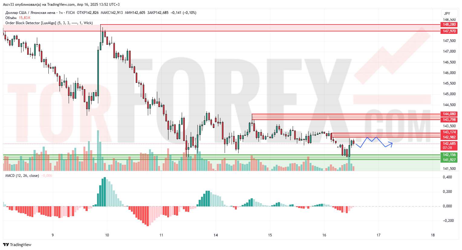При текущем уровне вероятна консолидация в диапазоне 142.15–142.98. Пробой ниже 141.92 усилит давление и приведёт к снижению. В случае отскока от 142.15 возможен возврат к 143.79 и попытка формирования разворота.