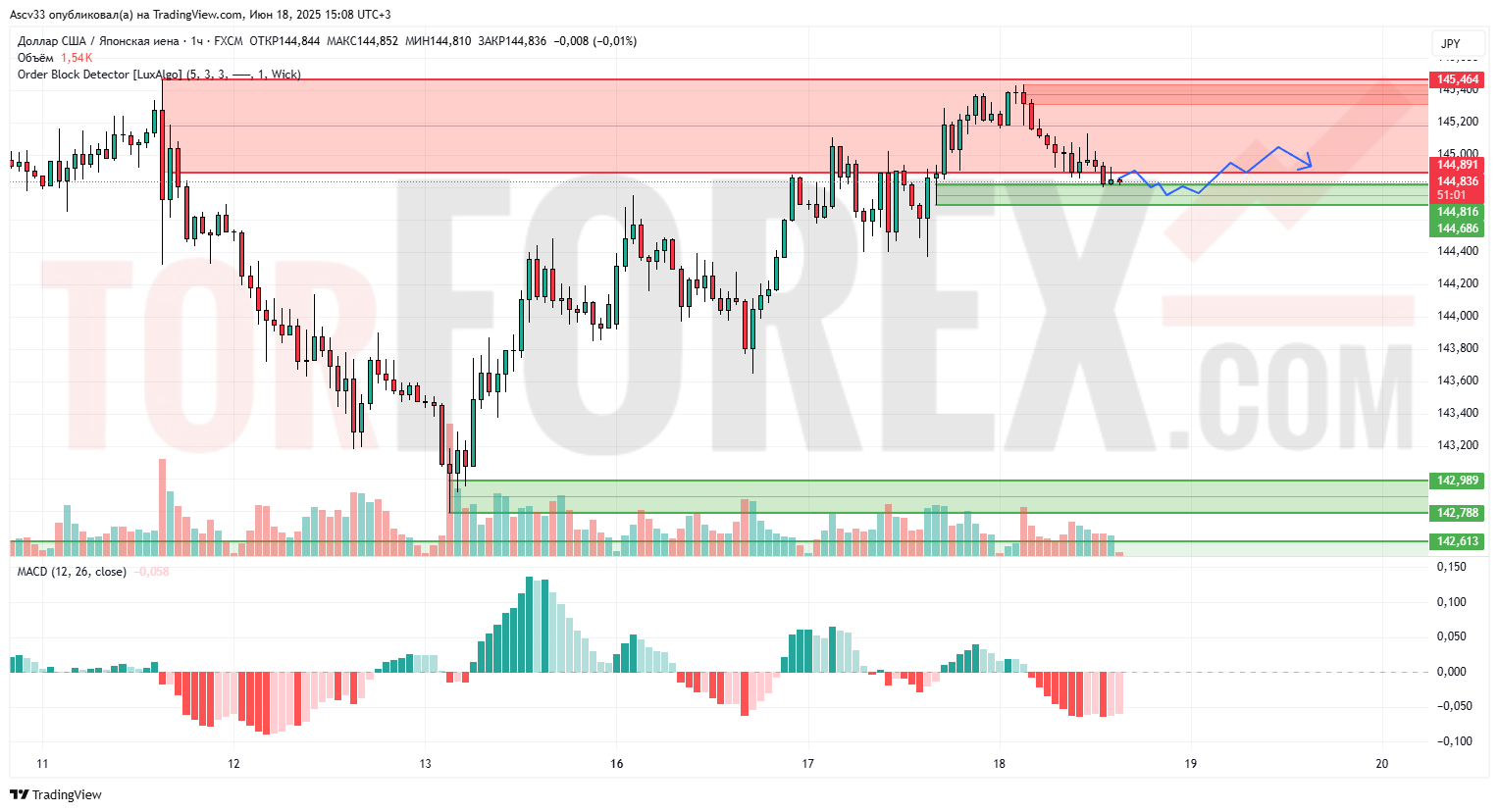 144,89–145,46 — ключевая область предложения, ограничивающая дальнейший рост.