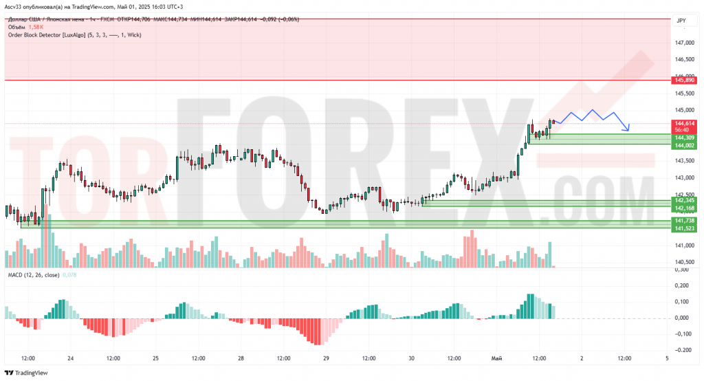 В краткосрочной перспективе ожидается боковое движение с возможной коррекцией к зоне 144,00–144,30. Рост выше 145,00 потребует импульсного пробоя и закрепления выше сопротивления.