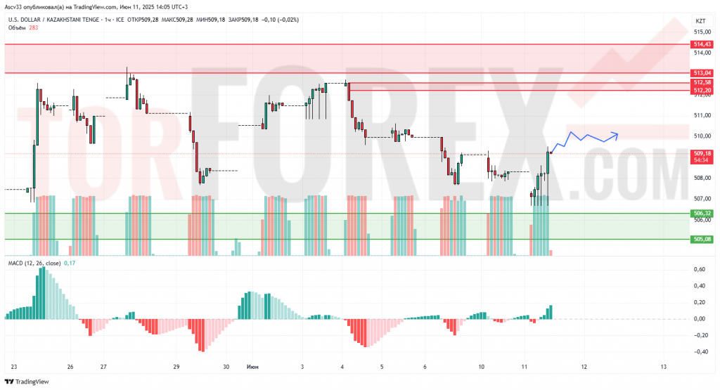 Пара USD/KZT демонстрирует попытку восстановления после локального снижения. Цена отскочила от зоны поддержки и в моменте тестирует уровень выше 509. Однако структура всё ещё остаётся в рамках нисходящего давления, несмотря на текущую краткосрочную коррекцию.
