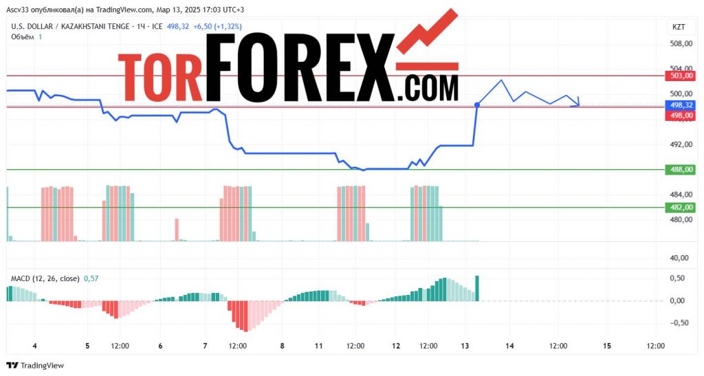 С высокой вероятностью USD/KZT останется в диапазоне 488,00–503,00 в течение следующих суток. Прорыв 498,00 вверх может усилить восходящую динамику, тогда как снижение ниже 488,00 увеличит вероятность коррекционного движения. Трейдерам рекомендуется внимательно следить за реакцией рынка у этих уровней, так как их пробой определит дальнейшее направление курса.