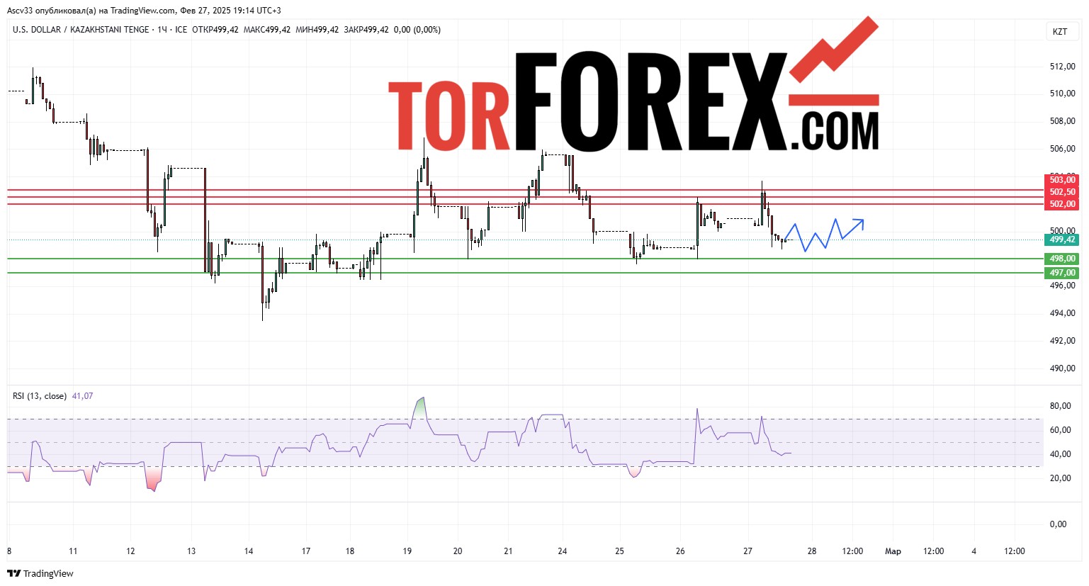 В ближайшие сутки пара USD/KZT, вероятно, продолжит движение в диапазоне 498,00–502,00 тенге за доллар. Трейдерам рекомендуется внимательно следить за реакцией цены на указанные уровни поддержки и сопротивления, поскольку их пробой может указать на дальнейшее направление движения.