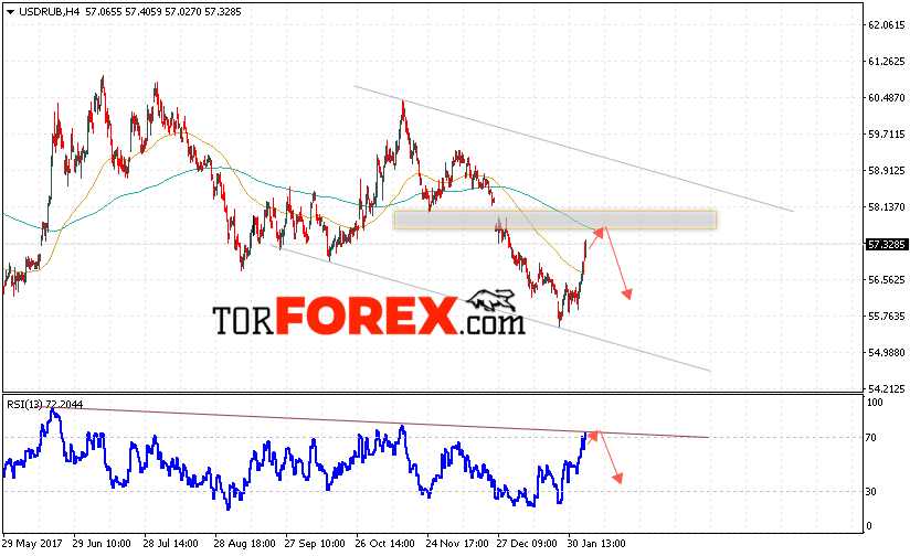Таким образом, USD/RUB прогноз Доллара на 7 февраля 2018 предполагает попытку теста уровня 57.50, откуда стоит ожидать отскок и попытку продолжения падения курса Доллара против Рубля с целью ниже уровня 56.00, дополнительным сигналом в пользу падения выступит тест линии сопротивления на индикаторе относительной силы.