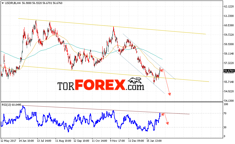 Отменой варианта падения пары USD/RUB на Форекс станет сильный рост и пробой уровня 57.40 рублей за доллар, что укажет на пробой верхней границы канала и продолжение роста пары Доллар Рубль в область выше уровня 58.50. Ожидать подтверждения падения пары стоит с пробоем уровня поддержки и закрытием котировок ниже области 55.70.