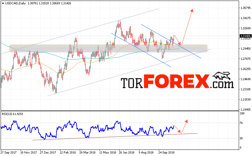 Таким образом, USD/CAD прогноз FOREX на 29 октября — 2 ноября 2018 предполагает попытку теста области поддержки вблизи уровня 1.2980 и начала роста с целью выше уровня 1.3570, дополнительным сигналом в пользу роста выступит тест линии тренда на индикаторе относительной силы, отменой варианта развития восходящей тенденции станет падение и пробой области 1.2750, что укажет на пробой нижней границы канала и продолжение снижения пары.