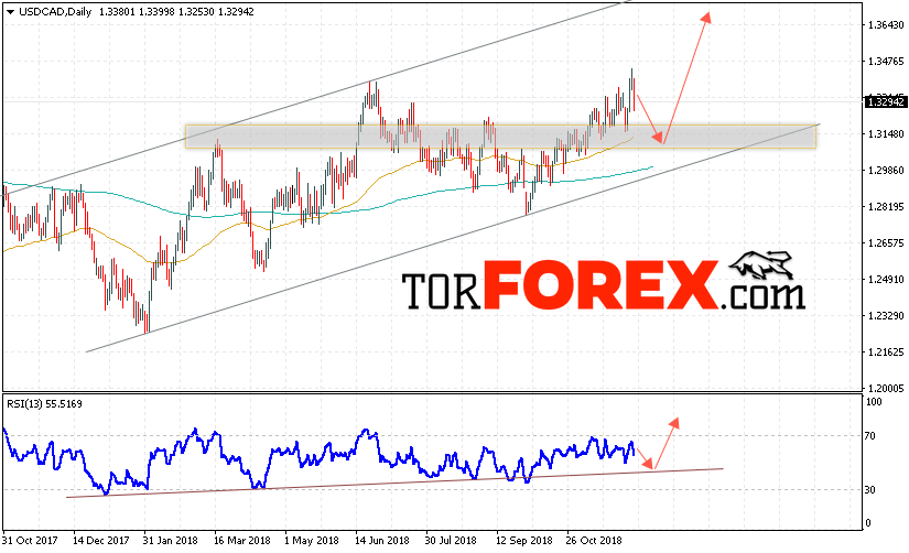 Таким образом, USD/CAD прогноз FOREX на неделю 10 — 14 декабря 2018 предполагает попытку теста области поддержки вблизи уровня 1.3140. Далее начала роста с целью выше уровня 1.3645. Дополнительным сигналом в пользу роста выступит тест линии тренда на индикаторе относительной силы. Отменой варианта развития восходящей тенденции станет падение и пробой области 1.2940. Это укажет на пробой нижней границы канала и продолжение снижения пары.