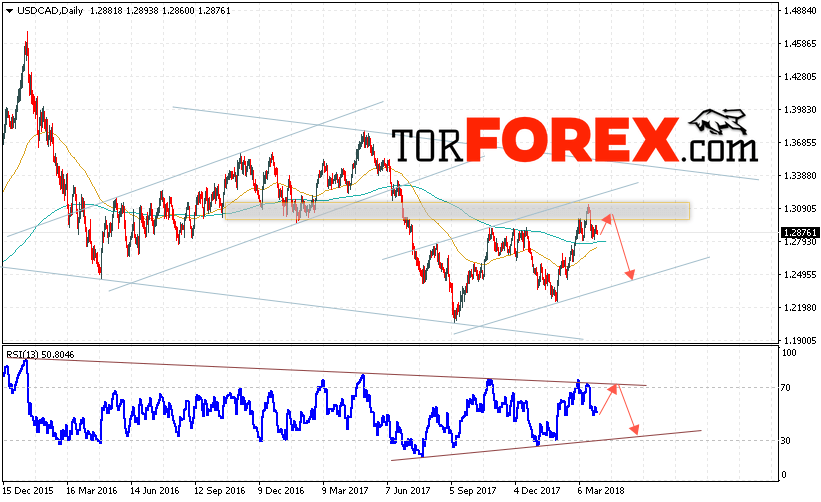 Таким образом, USD/CAD прогноз FOREX на неделю 2 — 6 апреля 2018 предполагает попытку теста области сопротивления вблизи уровня 1.3050 и продолжения падения с целью ниже 1.2500, дополнительным сигналом в пользу падения выступит тест линии тренда на индикаторе относительной силы, отменой варианта падения станет пробой области 1.3380, что укажет на пробой верхней границы нисходящего канала и продолжение роста пары.