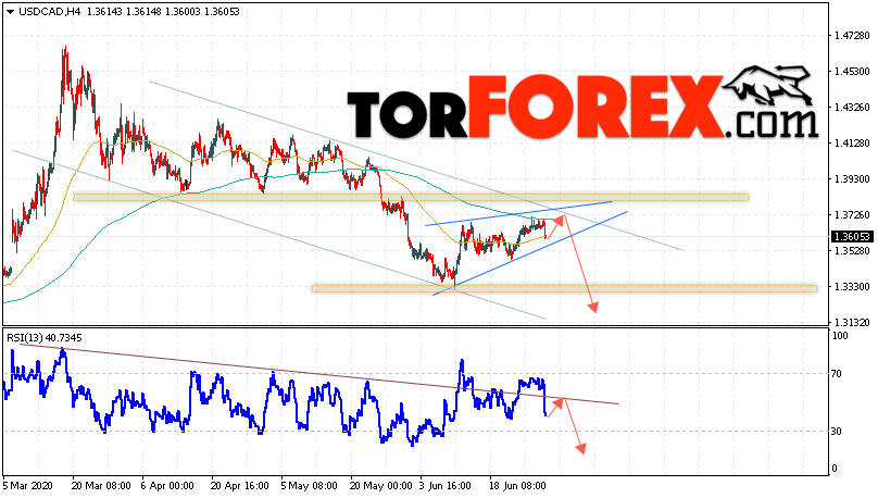 Таким образом, USD/CAD прогноз Канадский Доллар на 1 июля 2020 предполагает попытку теста области сопротивления вблизи уровня 1.3715. Далее, продолжение падения в область ниже уровня 1.3245. Дополнительным сигналом в пользу снижения Канадского Доллара на Форекс выступит тест линии тренда на индикаторе относительной силы. Отменой варианта падения котировок USD/CAD станет сильный рост и пробой уровня 1.3925. Это укажет на продолжение подъема с потенциальной целью выше уровня 1.4205.