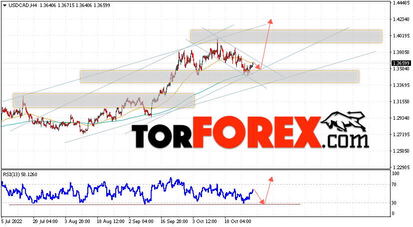 Таким образом, USD/CAD прогноз Канадский Доллар на 1 ноября 2022 предполагает попытку теста области поддержки вблизи уровня 1.3585. Далее, продолжение роста в область выше уровня 1.4235. Дополнительным сигналом в пользу подъёма Канадского Доллара на Форекс выступит тест линии тренда на индикаторе относительной силы. Отменой варианта роста котировок USD/CAD станет падение и пробой уровня 1.3375. Это укажет на продолжение снижения стоимости актива с потенциальной целью ниже уровня 1.3085.