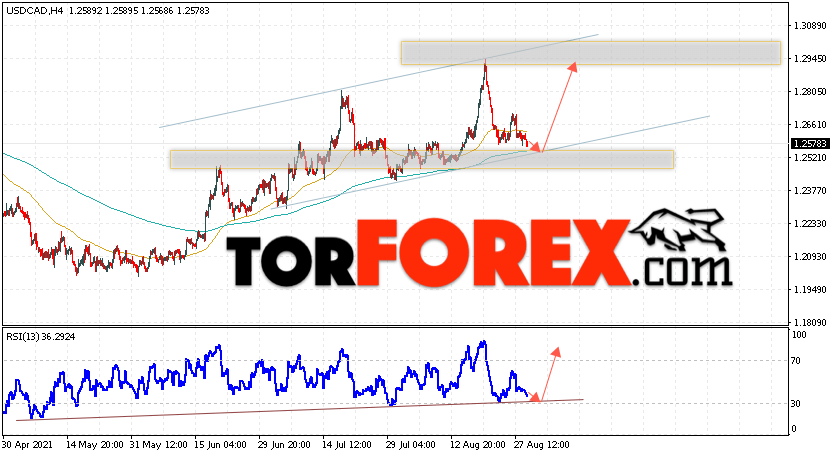 Дополнительным сигналом в пользу подъёма котировок Канадского Доллара выступит тест линии поддержки на индикаторе относительной силы. Вторым сигналом в пользу роста станет отскок от нижней границы бычьего канала. Отменой варианта роста валютной пары USD/CAD на Форекс станет падение и пробой области 1.2405. Это укажет на пробой области поддержки и продолжение падения котировок в область ниже уровня 1.2155. Ожидать подтверждения подъёма пары стоит с пробоем области сопротивления и закрытием котировок пары USD/CAD выше уровня 1.2705.