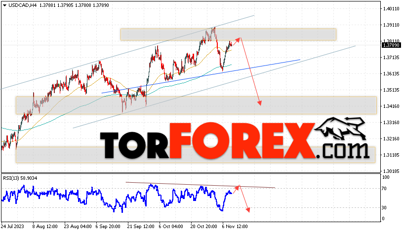 Таким образом, USD/CAD прогноз Канадский Доллар на 10 ноября 2023 предполагает попытку теста области сопротивления вблизи уровня 1.3815. Далее, продолжение падения в область ниже уровня 1.3415. Дополнительным сигналом в пользу снижения Канадского Доллара на Форекс выступит тест линии тренда на индикаторе относительной силы. Отменой варианта падения котировок USD/CAD станет сильный рост и пробой уровня 1.3915. Это укажет на продолжение роста стоимости актива с потенциальной целью выше уровня 1.4225.