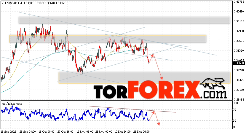 Таким образом, USD/CAD прогноз Канадский Доллар на 10 января 2023 предполагает попытку теста области сопротивления вблизи уровня 1.3425. Далее, продолжение падения в область ниже уровня 1.3145. Дополнительным сигналом в пользу снижения Канадского Доллара на Форекс выступит тест линии тренда на индикаторе относительной силы. Отменой варианта падения котировок USD/CAD станет сильный рост и пробой уровня 1.3685. Это укажет на продолжение подъёма стоимости актива с потенциальной целью выше уровня 1.3965.