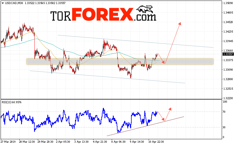 Таким образом, USD/CAD прогноз Канадский Доллар на 12 апреля 2019 предполагает попытку теста области поддержки вблизи уровня 1.3320. Далее, продолжение роста в область выше уровня 1.3455. Дополнительным сигналом в пользу подъёма пары на Форекс выступит тест линии тренда на индикаторе относительной силы. Отменой варианта роста Канадского Доллара станет падение и пробой уровня 1.3295. Это укажет на продолжение снижения с потенциальной целью ниже уровня 1.3175.