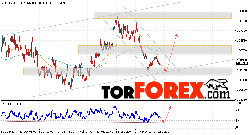 Таким образом, USD/CAD прогноз Канадский Доллар на 13 апреля 2023 предполагает попытку теста области поддержки вблизи уровня 1.3395. Далее, продолжение роста в область выше уровня 1.3765. Дополнительным сигналом в пользу подъёма Канадского Доллара на Форекс выступит тест линии тренда на индикаторе относительной силы. Отменой варианта роста котировок USD/CAD станет падение и пробой уровня 1.3305. Это укажет на продолжение снижения стоимости актива с потенциальной целью ниже уровня 1.3075.