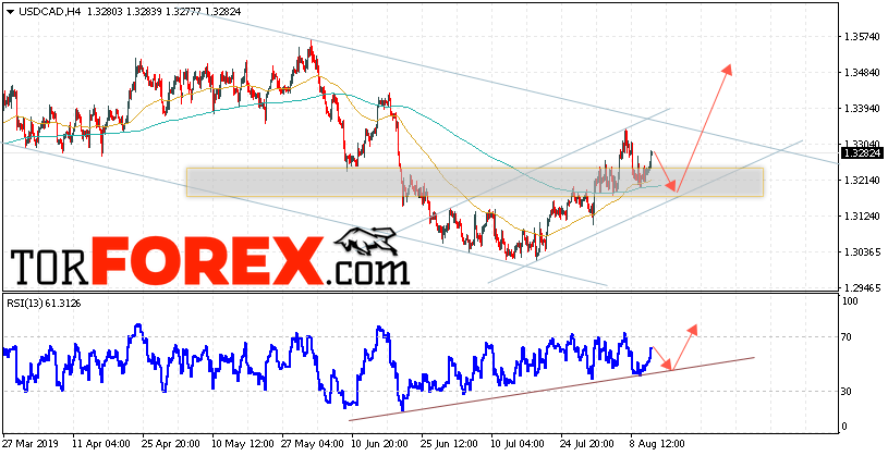 Таким образом, USD/CAD прогноз Канадский Доллар на 14 августа 2019 предполагает попытку теста области поддержки вблизи уровня 1.3185. Далее, продолжение роста в область выше уровня 1.3485. Дополнительным сигналом в пользу подъёма пары на Форекс выступит тест линии поддержки на индикаторе относительной силы. Отменой варианта роста Канадского Доллара станет падение и пробой уровня 1.3125. Это укажет на продолжение снижения с потенциальной целью ниже уровня 1.2905.