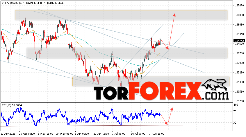 Таким образом, USD/CAD прогноз Канадский Доллар на 16 августа 2023 предполагает попытку теста области поддержки вблизи уровня 1.3405. Далее, продолжение роста в область выше уровня 1.3685. Дополнительным сигналом в пользу подъёма Канадского Доллара на Форекс выступит тест линии тренда на индикаторе относительной силы. Отменой варианта роста котировок USD/CAD станет падение и пробой уровня 1.3295. Это укажет на продолжение снижения стоимости актива с потенциальной целью ниже уровня 1.3035.