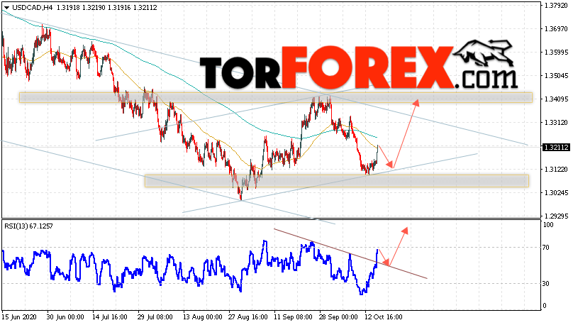 Дополнительным сигналом в пользу роста котировок Канадского Доллара выступит тест нисходящей линии тренда на индикаторе относительной силы, которую успешно пробили вверх покупатели актива. Вторым сигналом в пользу снижения станет отскок от нижней границы восходящего канала. Отменой варианта роста USD/CAD на Форекс станет падение и пробой области 1.3025. Это укажет на пробой области поддержки и продолжение падения котировок в область ниже уровня 1.2815. Ожидать ускорения роста пары стоит с пробоем области сопротивления и закрытием котировок пары USD/CAD выше уровня 1.3345.