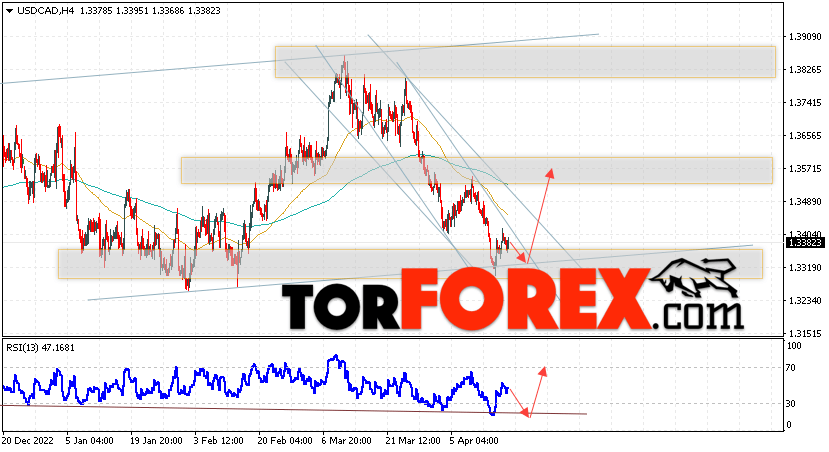 Таким образом, USD/CAD прогноз Канадский Доллар на 19 апреля 2023 предполагает попытку теста области поддержки вблизи уровня 1.3325. Далее, продолжение роста в область выше уровня 1.3575. Дополнительным сигналом в пользу подъёма Канадского Доллара на Форекс выступит тест линии тренда на индикаторе относительной силы. Отменой варианта роста котировок USD/CAD станет падение и пробой уровня 1.3265. Это укажет на продолжение снижения стоимости актива с потенциальной целью ниже уровня 1.3035.