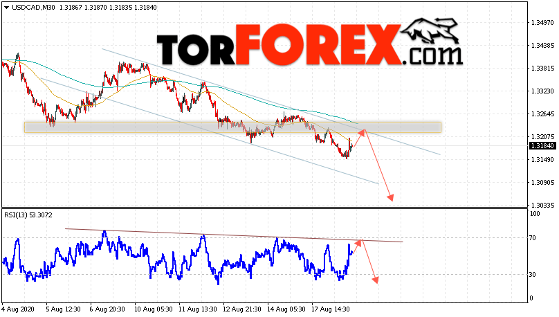 Дополнительным сигналом в пользу снижения котировок Канадского Доллара выступит тест линии сопротивления на индикаторе относительной силы. Вторым сигналом в пользу падения станет отскок от верхней границы нисходящего канала. Отменой варианта снижения USD/CAD на Форекс станет сильный рост и пробой области 1.3305. Это укажет на пробой области сопротивления и продолжение роста котировок в область выше уровня 1.3675. Ожидать ускорения падения пары стоит с пробоем области поддержки и закрытием котировок пары USD/CAD ниже уровня 1.3105.