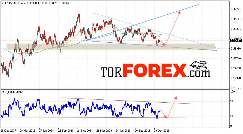 Таким образом, USD/CAD прогноз Канадский Доллар на 20 — 24 января 2020 предполагает попытку теста области поддержки вблизи уровня 1.2885. Далее, продолжение роста с целью выше уровня 1.3625. Дополнительным сигналом в пользу подъёма выступит тест линии тренда на индикаторе относительной силы. Отменой варианта развития бычьей тенденции станет падение и пробой области 1.2725. Это укажет на пробой нижней границы модели и продолжение падения пары с целью ниже 1.2425.