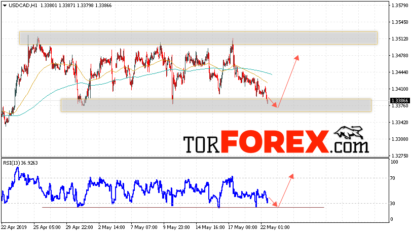 Таким образом, USD/CAD прогноз Канадский Доллар на 23 мая 2019 предполагает попытку теста области поддержки вблизи уровня 1.3365. Далее, продолжение роста в область выше уровня 1.3475. Дополнительным сигналом в пользу подъёма пары на Форекс выступит тест восходящей линии тренда на индикаторе относительной силы. Отменой варианта роста Канадского Доллара станет падение и пробой уровня 1.3325. Это укажет на продолжение снижения с потенциальной целью ниже уровня 1.3205.