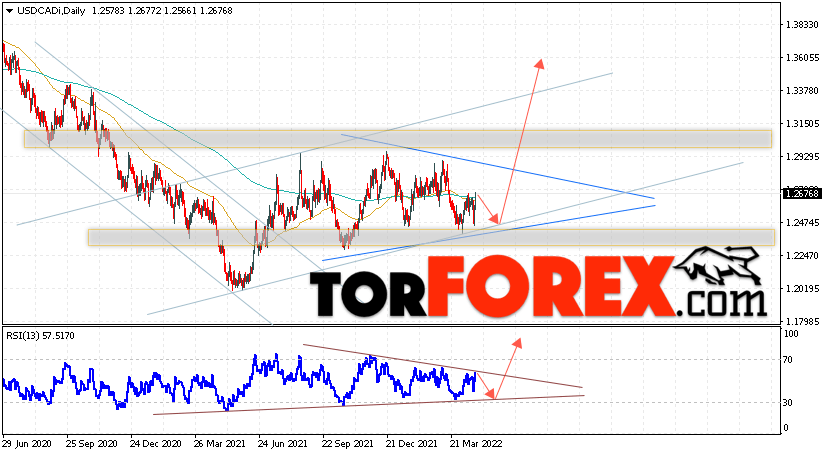 Таким образом, USD/CAD прогноз Канадский Доллар на 25 — 29 апреля 2022 предполагает попытку теста области поддержки вблизи уровня 1.2505. Далее, продолжение роста с целью выше уровня 1.3635. Дополнительным сигналом в пользу подъёма выступит тест линии тренда на индикаторе относительной силы. Отменой варианта развития роста станет падение и пробой области 1.2195. Это укажет на пробой важной поддержки и продолжение снижения подъёма с целью ниже 1.1735.