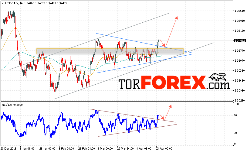 Таким образом, USD/CAD прогноз Канадский Доллар на 25 апреля 2019 предполагает попытку теста области поддержки вблизи уровня 1.3385. Далее, продолжение роста в область выше уровня 1.3565. Дополнительным сигналом в пользу подъёма пары на Форекс выступит тест линии тренда на индикаторе относительной силы. Отменой варианта роста Канадского Доллара станет падение и пробой уровня 1.3255. Это укажет на продолжение снижения с потенциальной целью ниже уровня 1.3145.