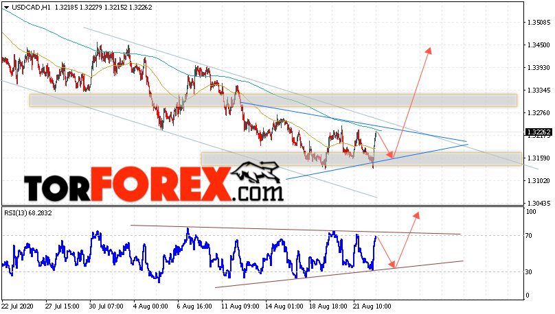 Таким образом, USD/CAD прогноз Канадский Доллар на 25 августа 2020 предполагает попытку теста области поддержки вблизи уровня 1.3160. Далее, продолжение роста в область выше уровня 1.3455. Дополнительным сигналом в пользу подъёма Канадского Доллара на Форекс выступит тест линии тренда на индикаторе относительной силы. Отменой варианта роста котировок USD/CAD станет падение и пробой уровня 1.3065. Это укажет на продолжение снижения стоимости актива с потенциальной целью ниже уровня 1.2805.