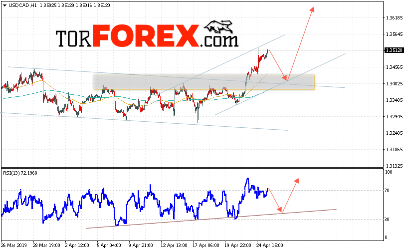 Таким образом, USD/CAD прогноз Канадский Доллар на 26 апреля 2019 предполагает попытку теста области поддержки вблизи уровня 1.3435. Далее, продолжение роста в область выше уровня 1.3655. Дополнительным сигналом в пользу подъёма пары на Форекс выступит тест линии тренда на индикаторе относительной силы. Отменой варианта роста Канадского Доллара станет падение и пробой уровня 1.3385. Это укажет на продолжение снижения с потенциальной целью ниже уровня 1.3245.