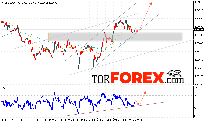 Таким образом, USD/CAD прогноз Канадский Доллар на 27 марта 2019 предполагает попытку теста области поддержки вблизи уровня 1.3380. Далее, продолжение роста в область выше уровня 1.3505. Дополнительным сигналом в пользу подъёма пары на Форекс выступит тест линии тренда на индикаторе относительной силы. Отменой варианта роста Канадского Доллара станет падение и пробой уровня 1.3325. Это укажет на продолжение снижения с потенциальной целью ниже уровня 1.3245.