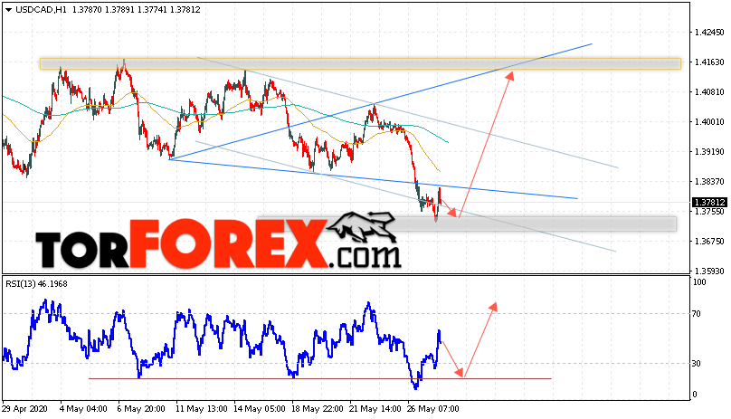 Таким образом, USD/CAD прогноз Канадский Доллар на 28 мая 2020 предполагает попытку теста области поддержки вблизи уровня 1.3745. Далее, продолжение роста в область выше уровня 1.4125. Дополнительным сигналом в пользу подъёма Канадского Доллара на Форекс выступит тест линии тренда на индикаторе относительной силы. Отменой варианта роста котировок USD/CAD станет падение и пробой уровня 1.3675. Это укажет на продолжение снижения с потенциальной целью ниже уровня 1.3505.