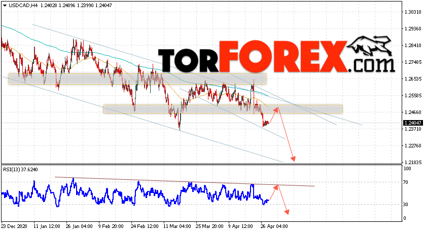 Таким образом, USD/CAD прогноз Канадский Доллар на 29 апреля 2021 предполагает попытку теста области сопротивления вблизи уровня 1.2465. Далее, продолжение падения в область ниже уровня 1.2185. Дополнительным сигналом в пользу снижения Канадского Доллара на Форекс выступит тест линии тренда на индикаторе относительной силы. Отменой варианта падения котировок USD/CAD станет сильный рост и пробой уровня 1.2625. Это укажет на продолжение подъёма стоимости актива с потенциальной целью выше уровня 1.2875.